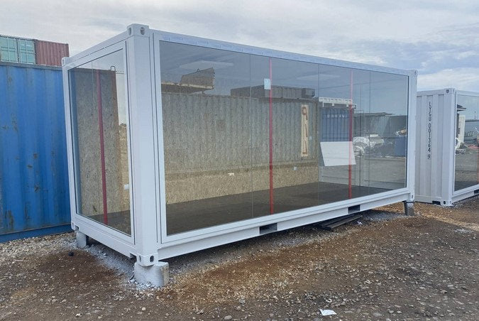 Verglaster Ausstellungscontainer
